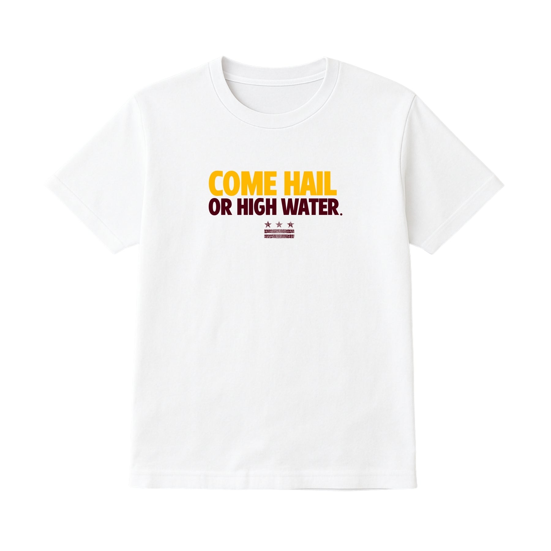 No matter the forecast, no matter the record—you're ridin'. The “Come Hail or High Water” tee and hoodie let the world know your loyalty to the home team is built to weather anything. Styled in classic burgundy and gold with a bold message front and center, this drop is for the day-ones who never flinch, never fold, and never switch sides.